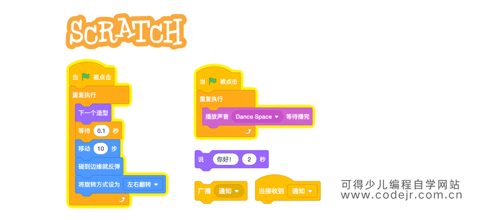 Scratch是一款由麻省理工学院(MIT) 设计开发的少儿编程工具。 其特点是:使用者可以不认识英文单词,也可以不会使用键盘。构成程序的命令和参数通过积木形状的模块来实现。用鼠标拖动模块到程序编辑栏就可以了。
